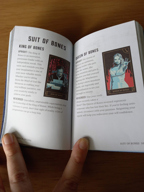 Specific to this review; Supernatural is a TV show about two brothers who travel America fighting demons, ghosts, witches and other creatures. It ran for 15 seasons so there's a lot of backstory, recurring and one off characters, themes and images repeated across the years - enough for a fantastic tarot deck!